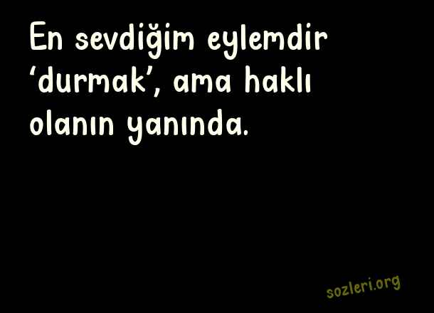En sevdiğim eylemdir - Adam Gibi Sözler .. En sevdiğim eylemdir ‘durmak’, ama haklı olanın yanında. ( Adam Gibi Sözler )