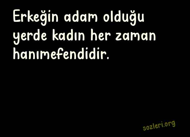 Erkeğin adam olduğu yerde kadın her zaman hanımefendidir. ( Adam Gibi Sözler )