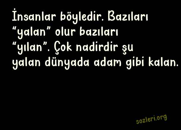 İnsanlar böyledir. Bazıları “yalan” olur bazıları “yılan”. Çok nadirdir şu yalan dünyada adam gibi kalan. ( Adam Gibi Sözler )