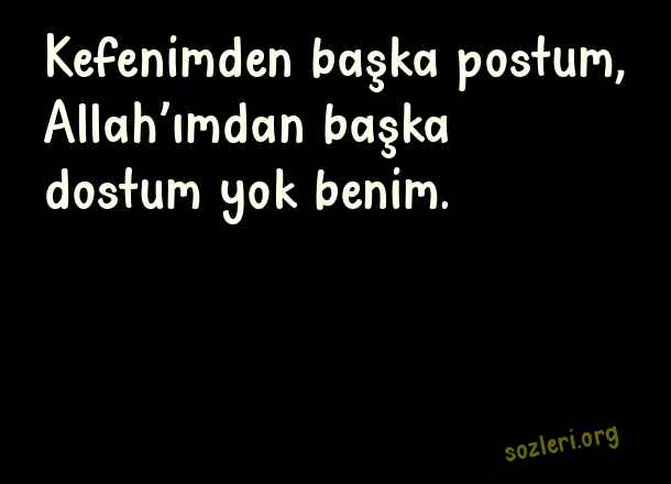 Kefenimden başka postum, - Adam Gibi Sözler .. Kefenimden başka postum, Allah’ımdan başka dostum yok benim. ( Adam Gibi Sözler )