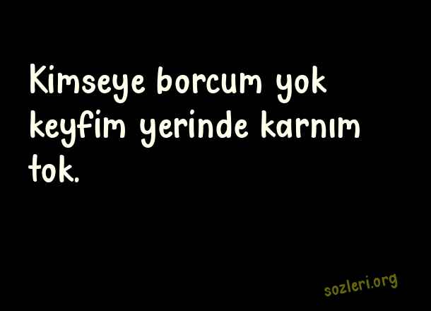Kimseye borcum yok keyfim yerinde karnım tok. ( Adam Gibi Sözler )