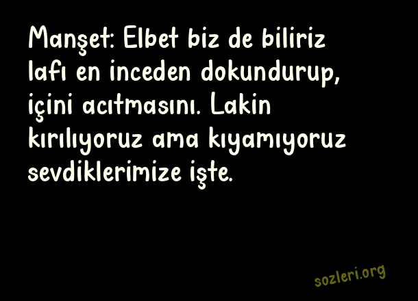 Manşet: Elbet biz de biliriz lafı en inceden dokundurup, içini acıtmasını. Lakin kırılıyoruz ama kıyamıyoruz sevdiklerimize işte. ( Adam Gibi Sözler )