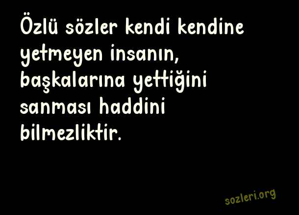 Özlü sözler kendi kendine yetmeyen insanın, başkalarına yettiğini sanması haddini bilmezliktir. ( Adam Gibi Sözler )