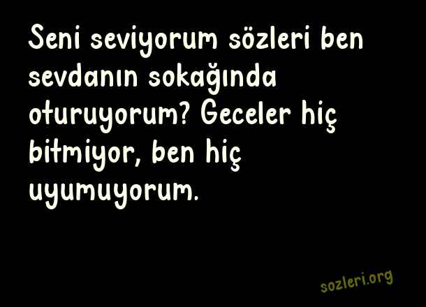 Seni seviyorum sözleri ben sevdanın sokağında oturuyorum? Geceler hiç bitmiyor, ben hiç uyumuyorum. ( Adam Gibi Sözler )