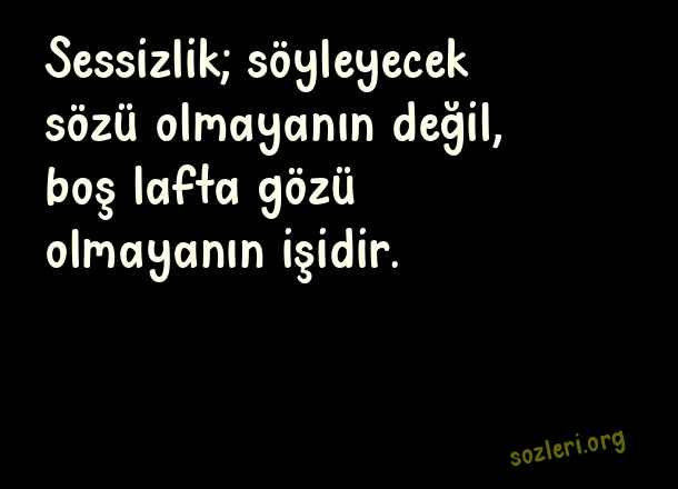 Sessizlik; söyleyecek sözü olmayanın değil, boş lafta gözü olmayanın işidir. ( Adam Gibi Sözler )