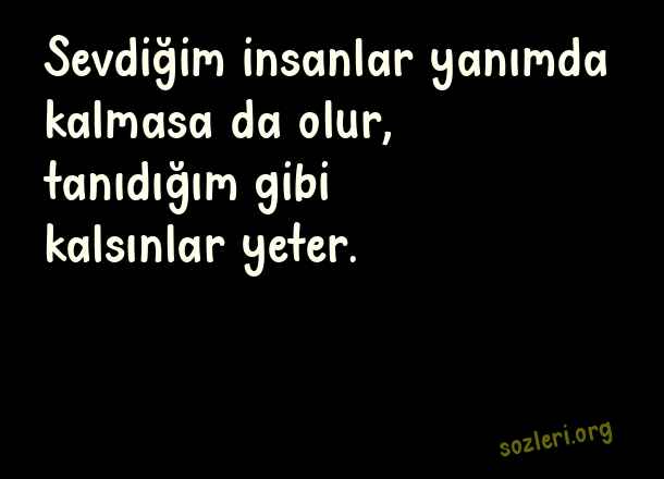 Sevdiğim insanlar yanımda kalmasa da olur, tanıdığım gibi kalsınlar yeter. ( Adam Gibi Sözler )