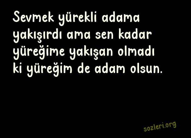 Sevmek yürekli adama yakışırdı ama sen kadar yüreğime yakışan olmadı ki yüreğim de adam olsun. ( Adam Gibi Sözler )