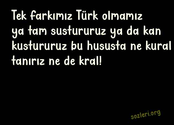 Tek farkımız Türk olmamız ya tam sustururuz ya da kan kustururuz bu hususta ne kural tanırız ne de kral! ( Adam Gibi Sözler )