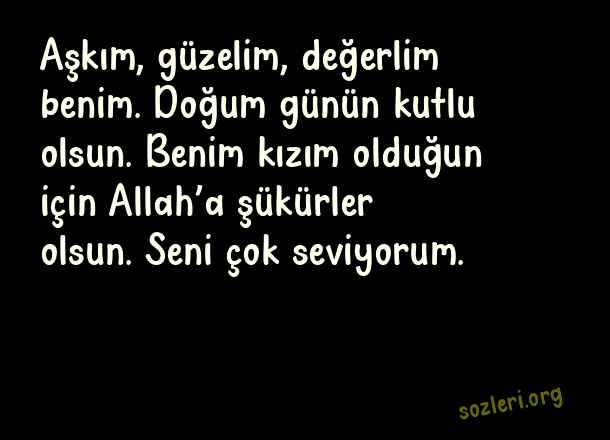 Aşkım, güzelim, değerlim benim. Doğum günün kutlu olsun. Benim kızım olduğun için Allah’a şükürler olsun. Seni çok seviyorum. ( Anneden Kızına Doğum Günü )