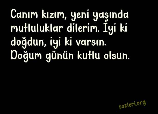 Canım kızım, yeni yaşında mutluluklar dilerim. İyi ki doğdun, iyi ki varsın. Doğum günün kutlu olsun. ( Anneden Kızına Doğum Günü )