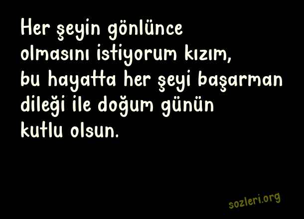Her şeyin gönlünce olmasını istiyorum kızım, bu hayatta her şeyi başarman dileği ile doğum günün kutlu olsun. ( Anneden Kızına Doğum Günü )