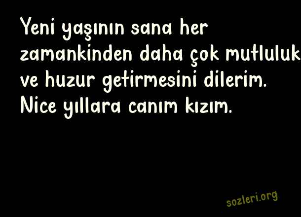 Yeni yaşının sana her zamankinden daha çok mutluluk ve huzur getirmesini dilerim. Nice yıllara canım kızım. ( Anneden Kızına Doğum Günü )