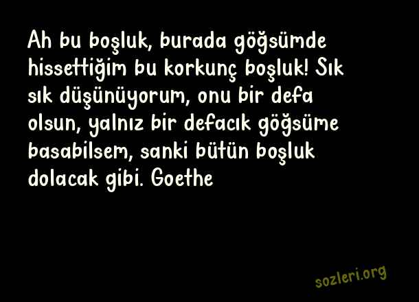 Ah bu boşluk, burada göğsümde hissettiğim bu korkunç boşluk! Sık sık düşünüyorum, onu bir defa olsun, yalnız bir defacık göğsüme basabilsem, sanki bütün boşluk dolacak gibi. Goethe ( Boşluk )