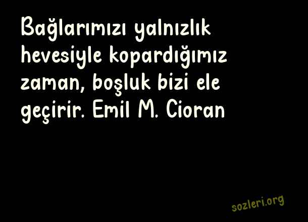 Bağlarımızı yalnızlık hevesiyle kopardığımız zaman, boşluk bizi ele geçirir. Emil M. Cioran ( Boşluk )