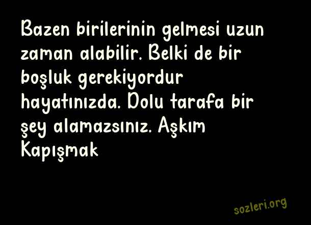 Bazen birilerinin gelmesi uzun zaman alabilir. Belki de bir boşluk gerekiyordur hayatınızda. Dolu tarafa bir şey alamazsınız. Aşkım Kapışmak ( Boşluk )