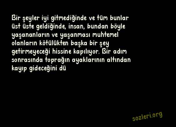 Bir şeyler iyi gitmediğinde ve tüm bunlar üst üste geldiğinde, insan, bundan böyle yaşananların ve yaşanması muhtemel olanların kötülükten başka bir şey getirmeyeceği hissine kapılıyor. Bir adım sonrasında toprağın ayaklarının altından kayıp gideceğini dü ( Boşluk )
