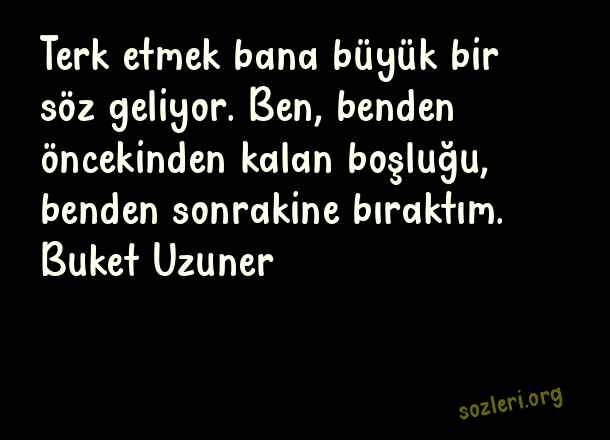 Terk etmek bana büyük bir söz geliyor. Ben, benden öncekinden kalan boşluğu, benden sonrakine bıraktım. Buket Uzuner ( Boşluk )
