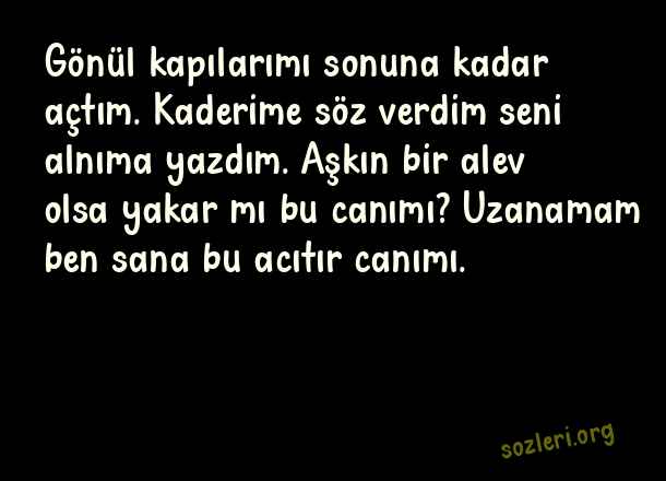 Gönül kapılarımı sonuna kadar açtım. Kaderime söz verdim seni alnıma yazdım. Aşkın bir alev olsa yakar mı bu canımı? Uzanamam ben sana bu acıtır canımı. ( Dokunaklı Mesajlar )