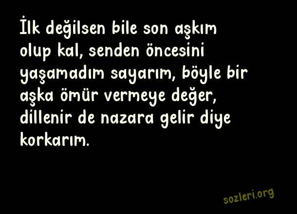 İlk değilsen bile son aşkım olup kal, senden öncesini yaşamadım sayarım, böyle bir aşka ömür vermeye değer, dillenir de nazara gelir diye korkarım. ( Dokunaklı Mesajlar )