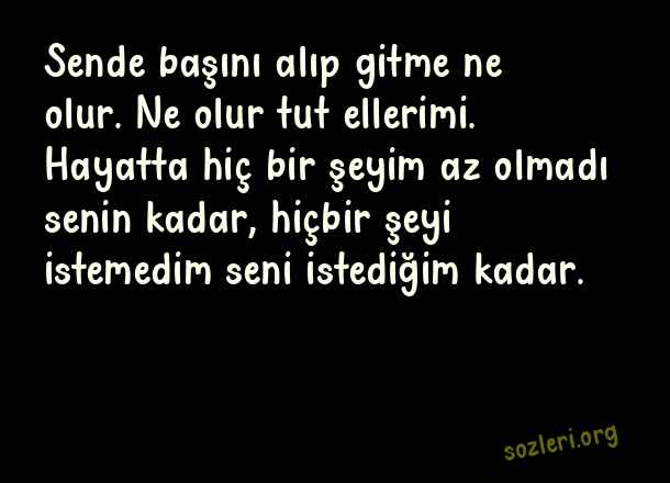 Sende başını alıp gitme ne olur. Ne olur tut ellerimi. Hayatta hiç bir şeyim az olmadı senin kadar, hiçbir şeyi istemedim seni istediğim kadar. ( Dokunaklı Mesajlar )