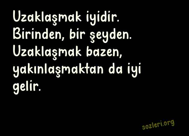 Uzaklaşmak iyidir. Birinden, bir şeyden. Uzaklaşmak bazen, yakınlaşmaktan da iyi gelir. ( Dokunaklı Mesajlar )