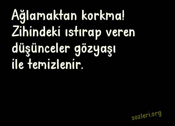 Ağlamaktan korkma! Zihindeki ıstırap veren düşünceler gözyaşı ile temizlenir. ( Eşsiz Sözler )