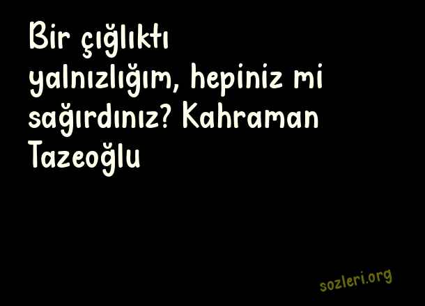 Bir çığlıktı yalnızlığım, - Eşsiz Sözler .. Bir çığlıktı yalnızlığım, hepiniz mi sağırdınız? Kahraman Tazeoğlu ( Eşsiz Sözler )