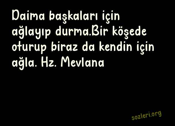 Daima başkaları için ağlayıp durma.Bir köşede oturup biraz da kendin için ağla. Hz. Mevlana ( Eşsiz Sözler )