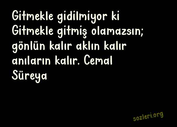 Gitmekle gidilmiyor ki… Gitmekle gitmiş olamazsın; gönlün kalır aklın kalır anıların kalır. Cemal Süreya ( Eşsiz Sözler )