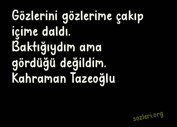 Gözlerini gözlerime çakıp içime daldı. Baktığıydım ama gördüğü değildim. Kahraman Tazeoğlu ( Eşsiz Sözler )