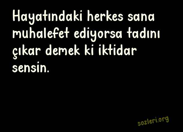 Hayatındaki herkes sana muhalefet ediyorsa tadını çıkar demek ki iktidar sensin. ( Eşsiz Sözler )
