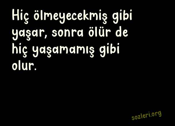 Hiç ölmeyecekmiş gibi - Eşsiz Sözler .. Hiç ölmeyecekmiş gibi yaşar, sonra ölür de hiç yaşamamış gibi olur. ( Eşsiz Sözler )