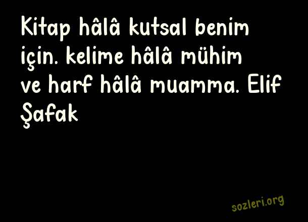 Kitap hâlâ kutsal benim için. kelime hâlâ mühim ve harf hâlâ muamma. Elif Şafak ( Eşsiz Sözler )