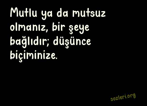 Mutlu ya da mutsuz olmanız, bir şeye bağlıdır; düşünce biçiminize. ( Eşsiz Sözler )