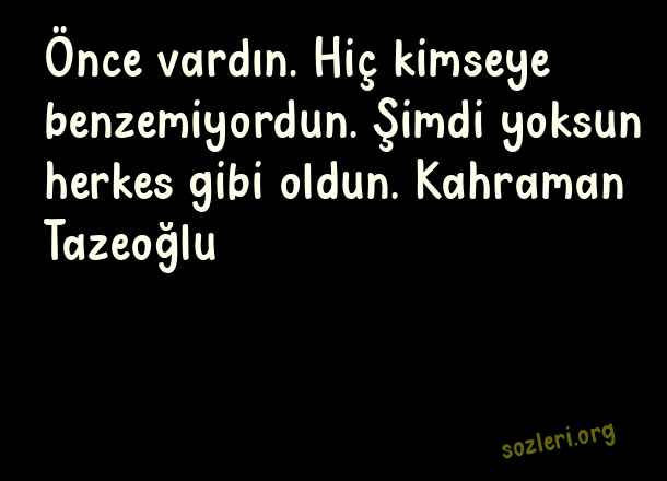 Önce vardın. Hiç kimseye benzemiyordun. Şimdi yoksun herkes gibi oldun. Kahraman Tazeoğlu ( Eşsiz Sözler )