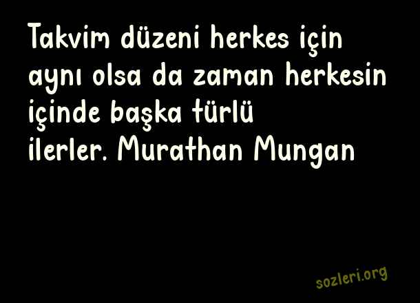 Takvim düzeni herkes için aynı olsa da zaman herkesin içinde başka türlü ilerler. Murathan Mungan ( Eşsiz Sözler )