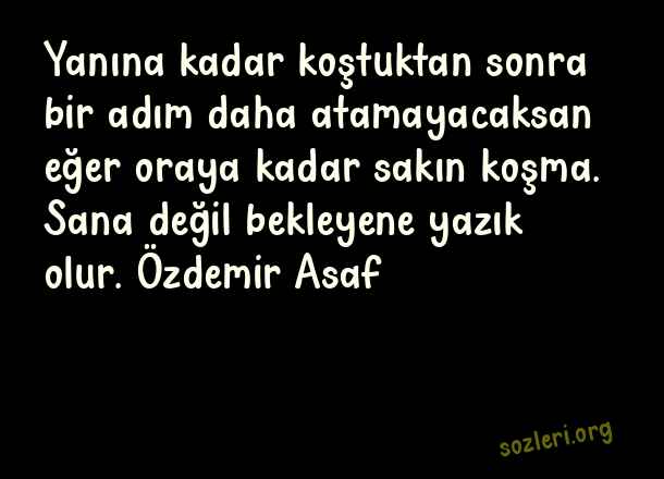 Yanına kadar koştuktan sonra bir adım daha atamayacaksan eğer oraya kadar sakın koşma. Sana değil bekleyene yazık olur. Özdemir Asaf ( Eşsiz Sözler )