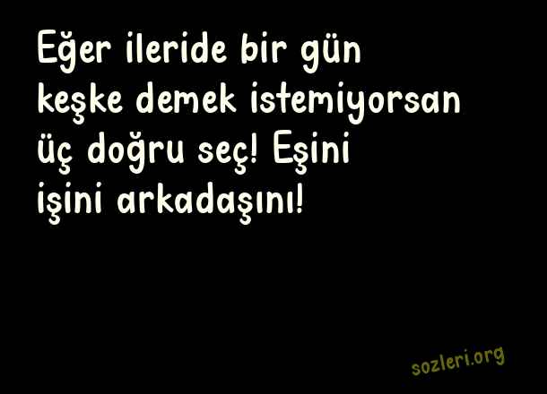 Eğer ileride bir gün keşke demek istemiyorsan üç doğru seç! Eşini işini arkadaşını! ( Günün En Güzel )