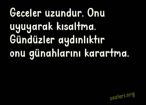 Geceler uzundur. Onu uyuyarak kısaltma. Gündüzler aydınlıktır onu günahlarını karartma. ( Günün En Güzel )