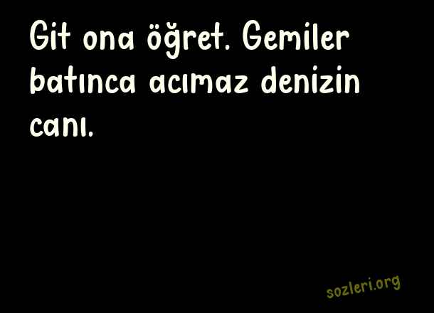 Git ona öğret. - Günün En Güzel Sözleri .. Git ona öğret. Gemiler batınca acımaz denizin canı. ( Günün En Güzel )