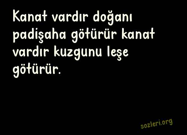 Kanat vardır doğanı padişaha götürür kanat vardır kuzgunu leşe götürür. ( Günün En Güzel )