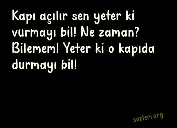 Kapı açılır sen yeter ki vurmayı bil! Ne zaman? Bilemem! Yeter ki o kapıda durmayı bil! ( Günün En Güzel )