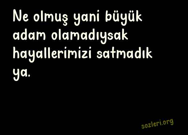 Ne olmuş yani - Günün En Güzel Sözleri .. Ne olmuş yani büyük adam olamadıysak hayallerimizi satmadık ya. ( Günün En Güzel )