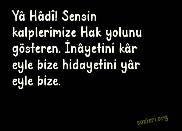 Yâ Hâdî! Sensin kalplerimize Hak yolunu gösteren. İnâyetini kâr eyle bize hidayetini yâr eyle bize. ( Günün En Güzel )