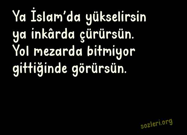 Ya İslam’da yükselirsin ya inkârda çürürsün. Yol mezarda bitmiyor gittiğinde görürsün. ( Günün En Güzel )