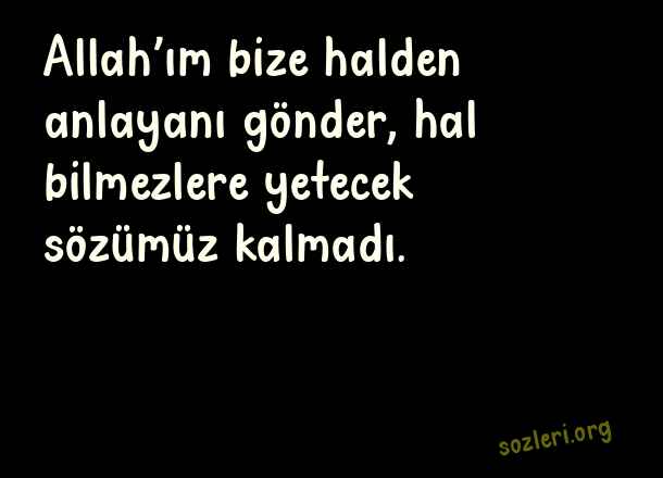 Allah’ım bize halden anlayanı gönder, hal bilmezlere yetecek sözümüz kalmadı. ( Güzel Sözler Sayfası )