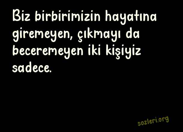Biz birbirimizin hayatına giremeyen, çıkmayı da beceremeyen iki kişiyiz sadece. ( Güzel Sözler Sayfası )