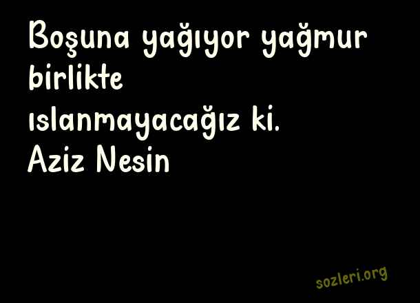 Boşuna yağıyor yağmur birlikte ıslanmayacağız ki. Aziz Nesin ( Güzel Sözler Sayfası )