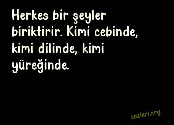 Herkes bir şeyler biriktirir. Kimi cebinde, kimi dilinde, kimi yüreğinde. ( Güzel Sözler Sayfası )