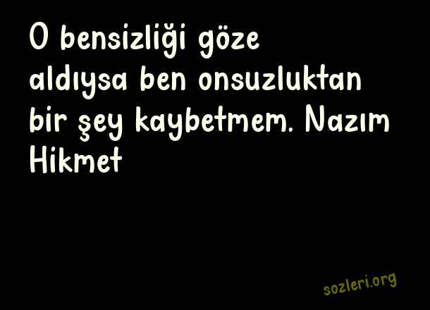 O bensizliği göze - Güzel Sözler Sayfası .. O bensizliği göze aldıysa ben onsuzluktan bir şey kaybetmem. Nazım Hikmet ( Güzel Sözler Sayfası )